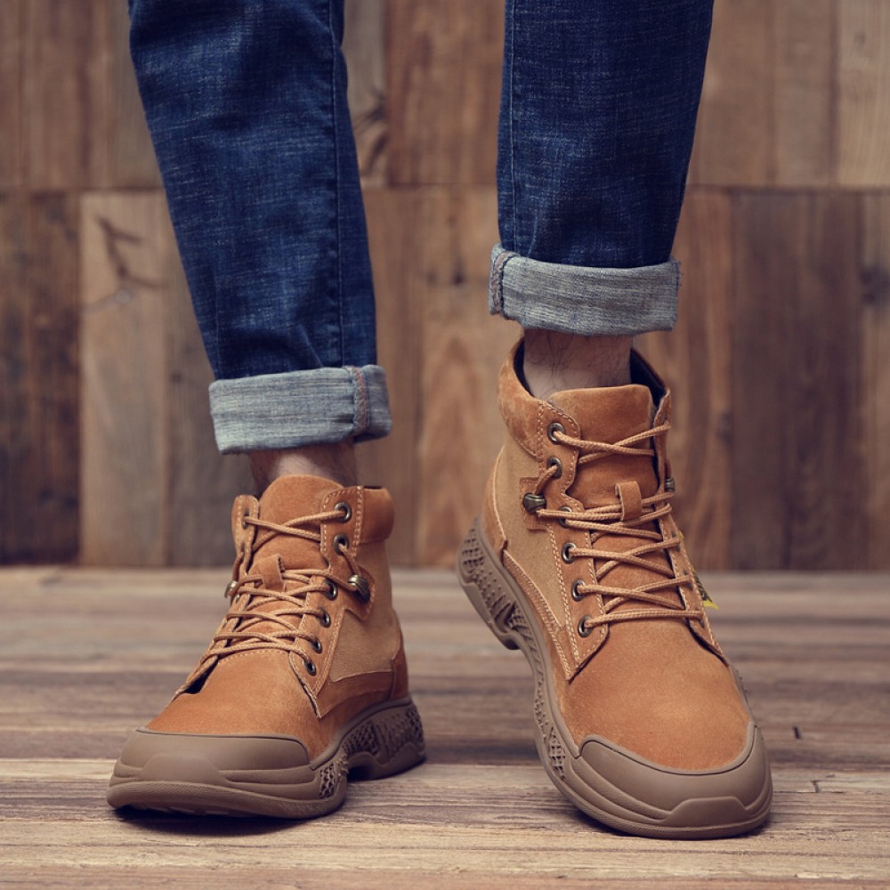 Men's High Top Shoes Leather Casual Martin Boots Autumn Trendy Shoes