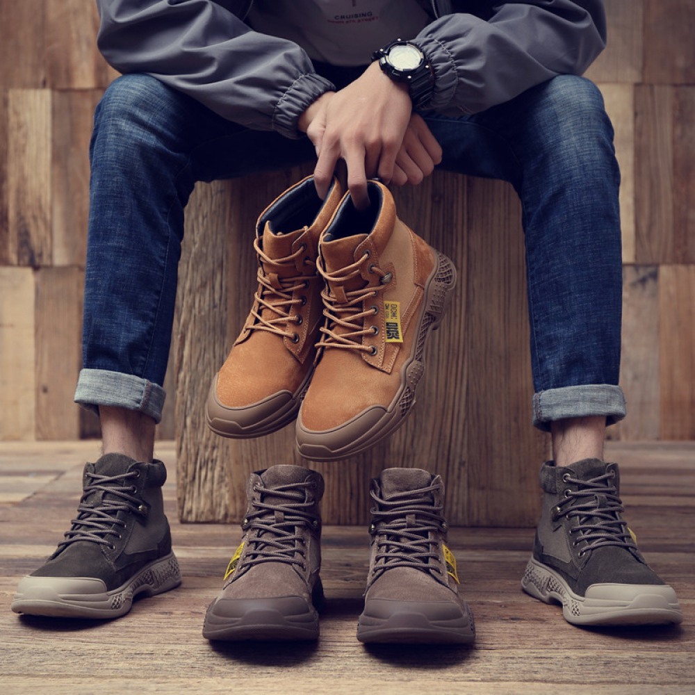 Men's Autumn and Winter New High-Top Boots Trend Tooling Military Boots British Martin Boots Men's Trendy Mid-Top
