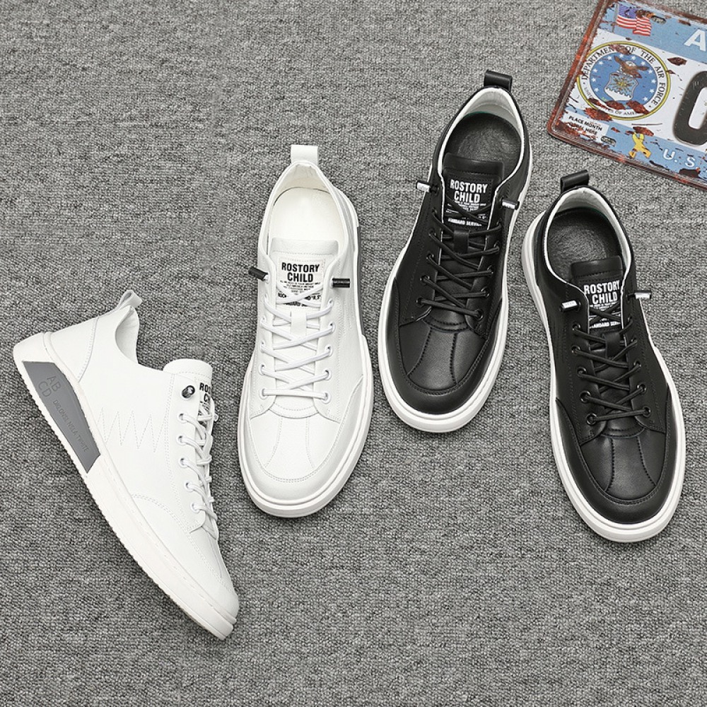 Men's Autumn New Trend Sports Casual Shoes Low-Top Leather Mens Sneakers White Shoes