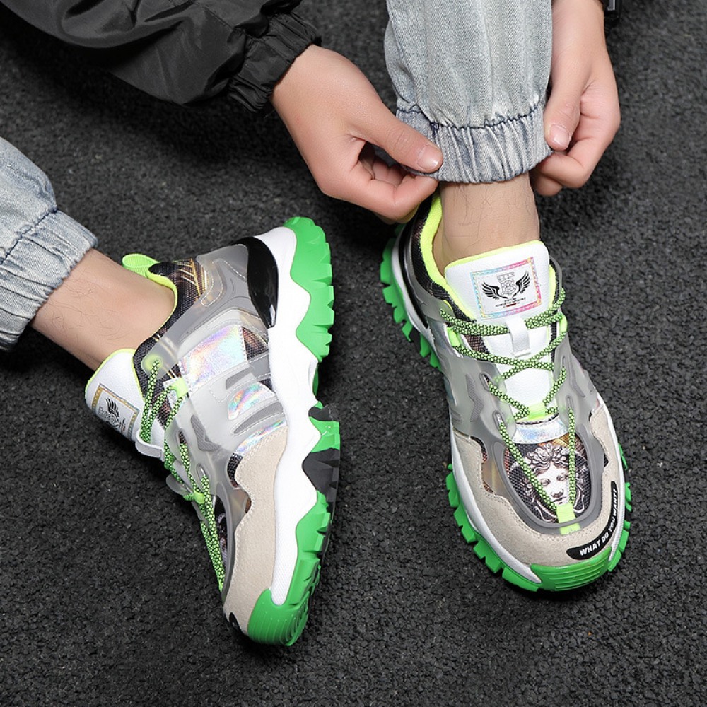 Spring New Sports Running Sneakers Trend Thick-Soled Flying Woven Personality Hip-Hop Trendy Shoes