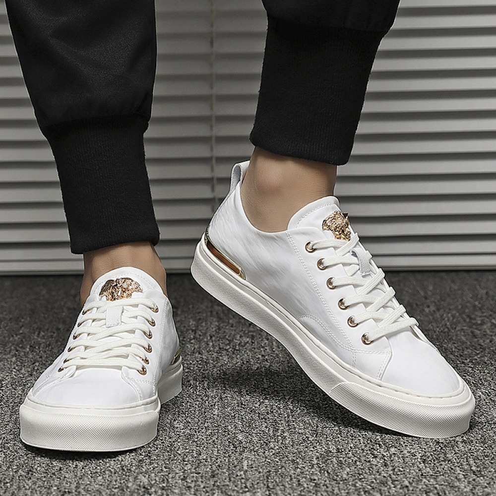 Men's Autumn New Trend Sports Casual Shoes Low-Top Leather Mens Sneakers White Shoes