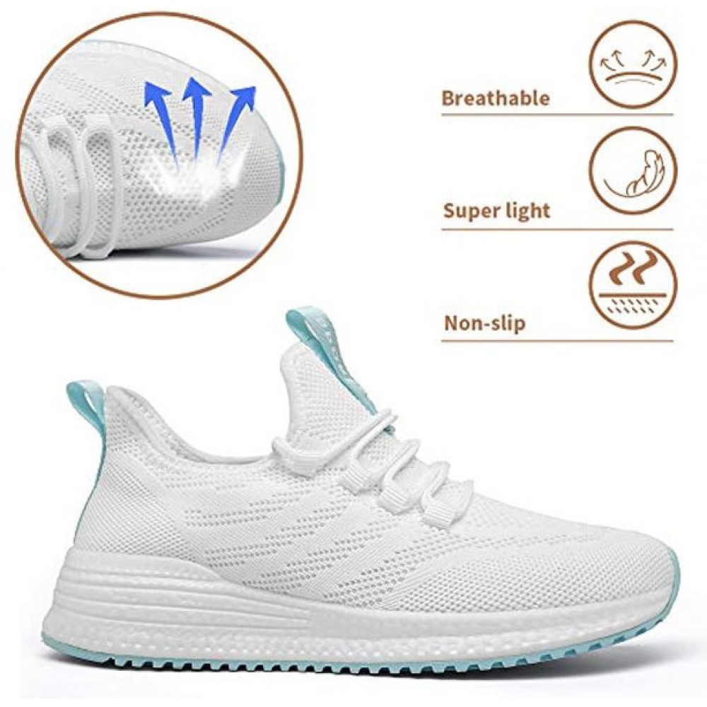Women's Running Shoes Lightweight Non Slip Breathable Mesh Sneakers Sports Athletic Walking Shoes White