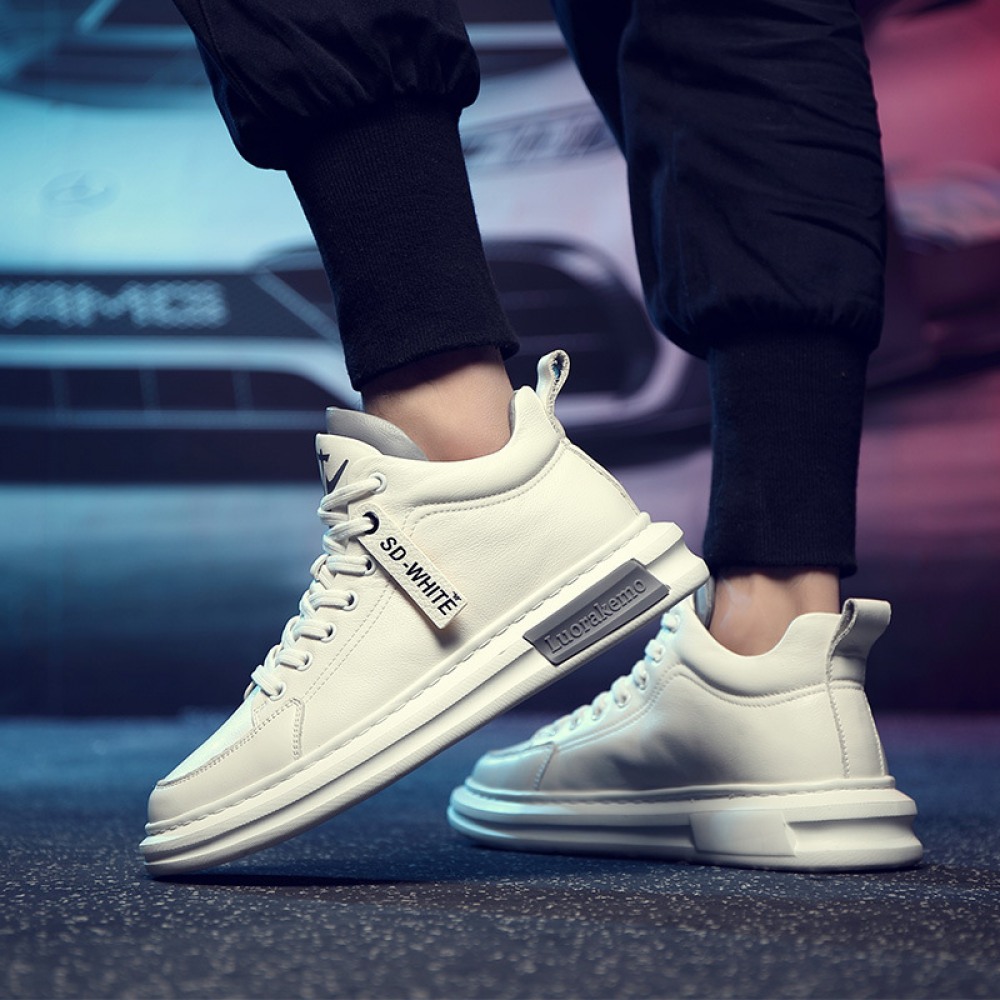 Men's Autumn New Trend Sports Casual Shoes Low-Top Leather Mens Sneakers White Shoes