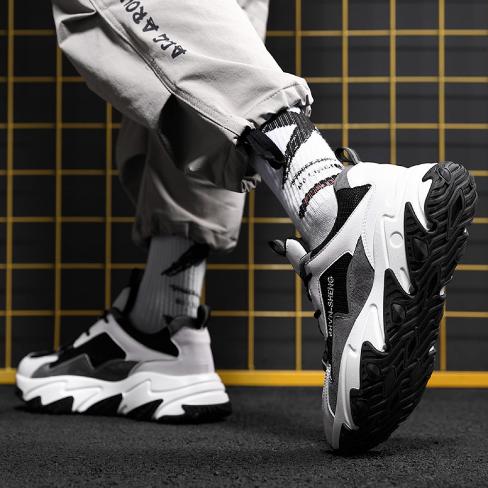 Men's Round Head Shoes Front Lace-Up Mid-Heel Casual Sports Single Shoes